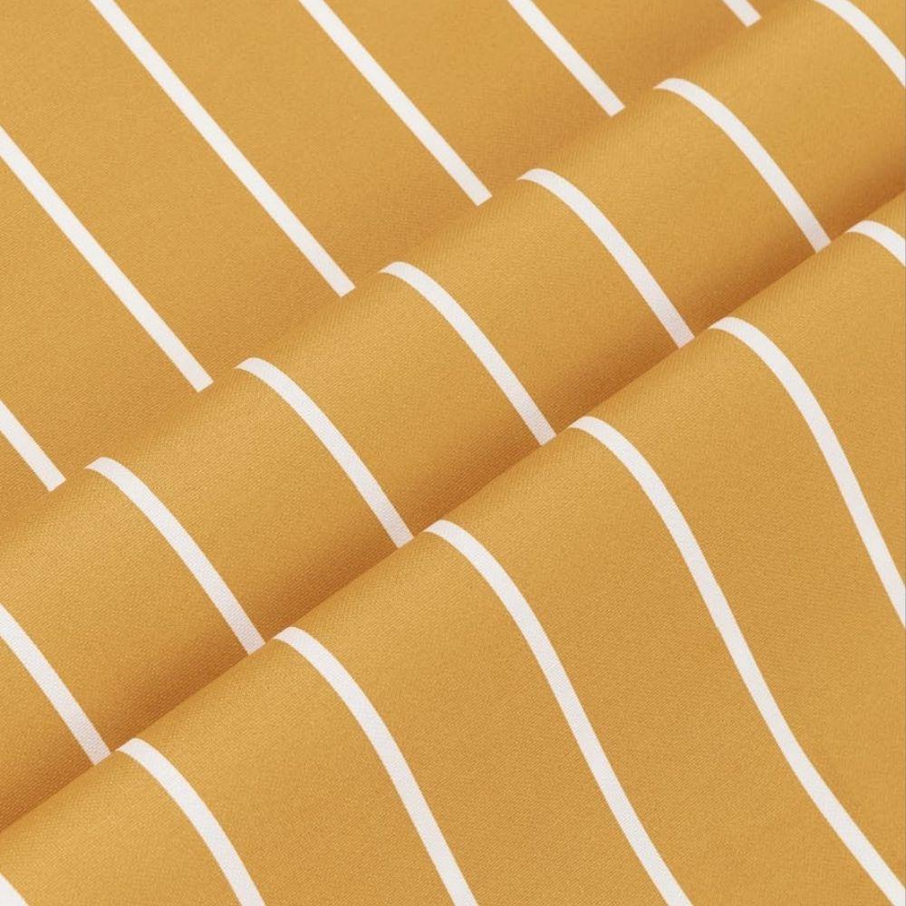 Combinação de Cores: Possui fundo Mostarda e listras brancas