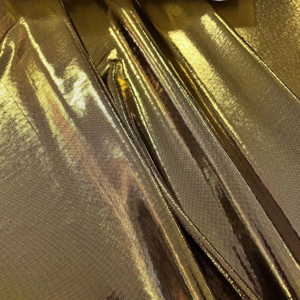 Tecido Lamê possui um acabamento metalizado que lhe confere um brilho intenso, sendo maleável e com caimento fluido. Requer cuidados delicados, como lavagem a seco ou à mão, sem torcer, e sem contato direto com o ferro quente para evitar danificar o brilho. É ideal para roupas de festa, fantasias, decoração e artesanatos que exigem um toque de luxo e vivacidade.