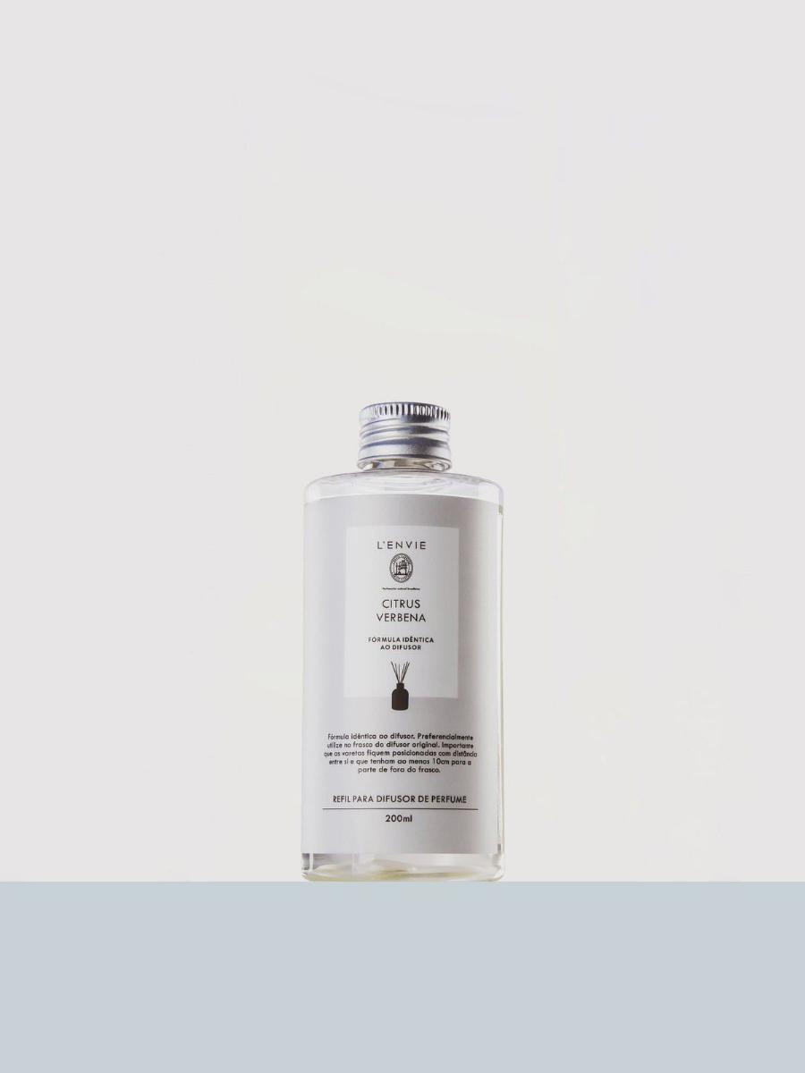 O Refil Difusor de Perfume Citrus Verbena 200ml, ideal para a reposição do líquido no frasco do difusor, sendo uma opção prática e sustentável.