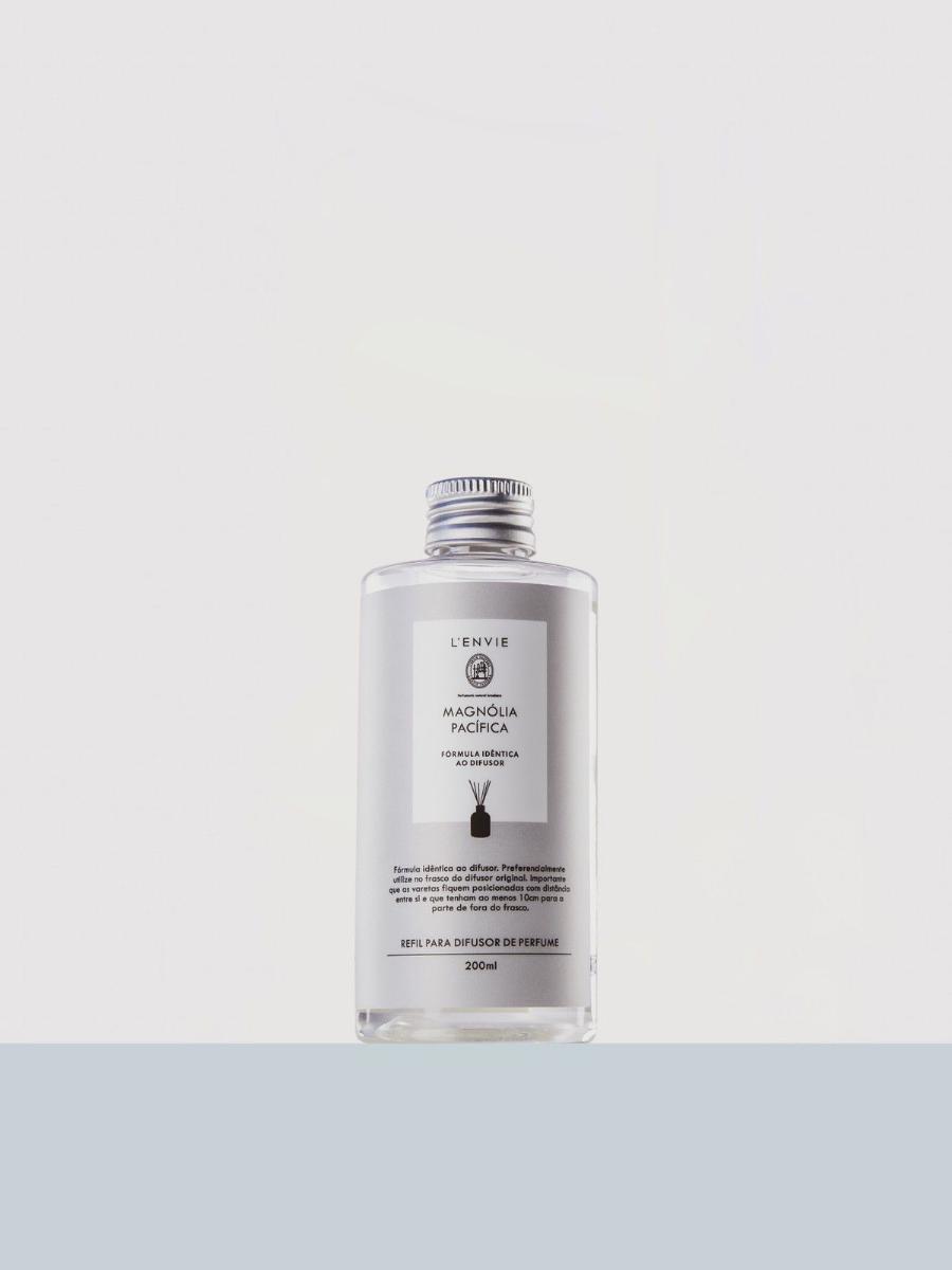 O Refil Difusor de Perfume Magnólia Pacífica 200ml, ideal para a reposição do líquido no frasco do difusor, sendo uma opção prática e sustentável.